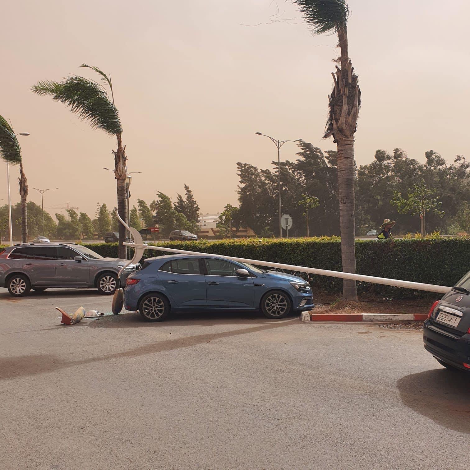 عاصفة من الغبار وسرعة رياح فاقت 95 كلم في الساعة تسببت في تعطيل مطار محمد الخامس وتحويل رحلة "الإماراتية" إلى مدريد وحوادث بالطرق السيارة (صور)