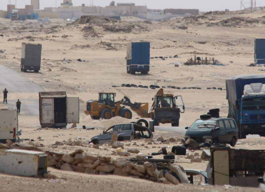 صورة من معبر الكركرات صباح اليوم، حيث تعمل الوحدات الفنية للجيش بإزالة العوائق قبل إعادة فتح المعبر