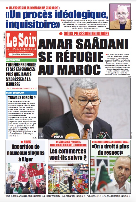 وزعم المصدر نفسه أن سعداني وصل بالفعل إلى المغرب قادما إليه من البرتغال التي كان يستقر بها هي الأخرى قادما من فرنسا، وكل ذلك هربا من المتابعة القضائية ومن إمكانية تحريك السلطات الجزائرية لمسطرة ترحيله، خاصة بعد دعوة وزير العدل، بلقاسم زغماتي، لـ"احترام الاتفاقيات الدولية بشأن استرداد الأموال التي جناها أصحابها عن طريق الفساد"، مبرزة أن رئيس الغرفة البرلمانية الثانية السابق مصنف رسميا كـ"هارب"، كونه يتابع منذ 2018 وجرى استدعاؤه مرتين للاستماع إليه في قضية اختلاس أراض، لكنه لم يستجب.