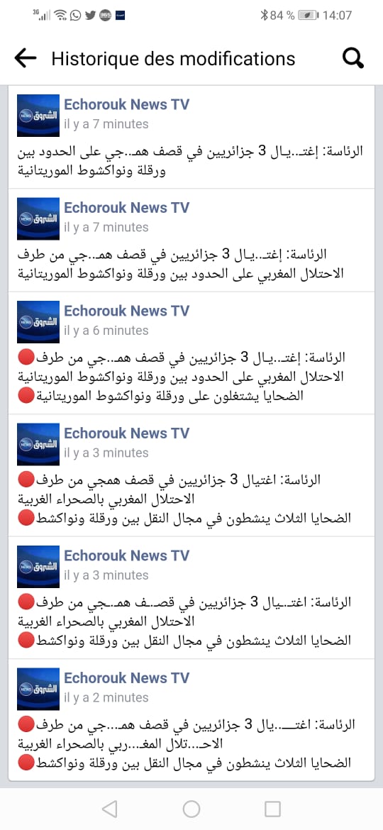 تعديلات جريدة الشروق الجزائرية للخبر لأزيد من 15 مرة هلال أقل 23 دقيقة من نشره