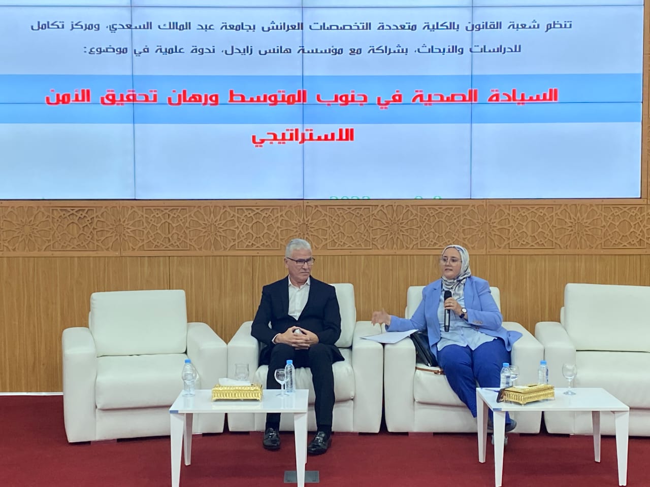 نظمت شعبة القانون بالكلية المتعددة التخصصات العرائش بجامعة عبد المالك السعدي، ومركز تكامل للدراسات والأبحاث، بشراكة مع مؤسسة هانس زايدل، ندوة علمية بعنوان "السيادة الصحية في جنوب المتوسط ورهان تحقيق الأمن الإستراتيجي"، وذلك على مدار يومي الخميس والجمعة 8 و9 يونيو 2023.