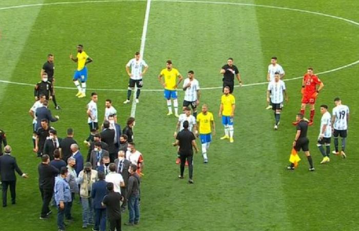 توقفت المباراة بين الغريمين التقليديين المنتخب البرازيلي وضيفه الأرجنتيني ،اليوم الأحد، في تصفيات أمريكا الجنوبية المؤهلة الى مونديال 2022، وذلك بعد دقائق معدودة على انطلاقها بسبب مخالفة بروتوكولات فيروس كورونا.