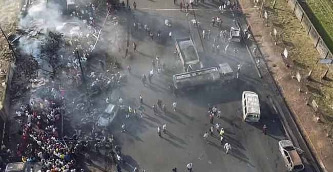 Video obtained by The Associated Press showed a giant fireball burning in the night sky as some survivors with severe burns cried out in pain. The charred remains of some victims lay strewn at the scene, awaiting transport to mortuaries.