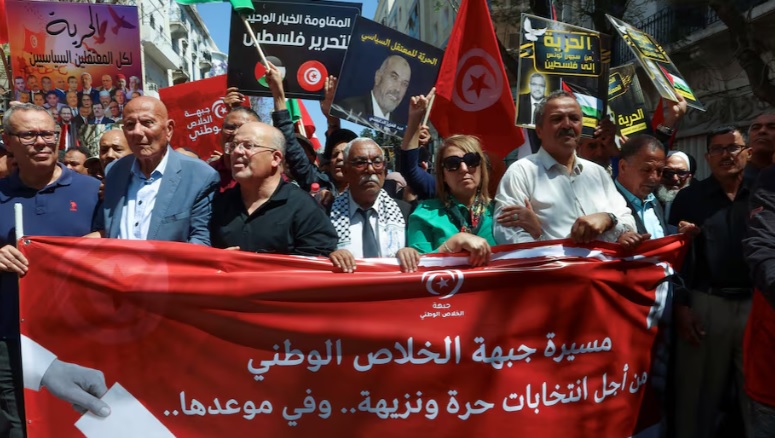 Hundreds of protesters gathered in the Tunisian capital on Sunday to demand the release of imprisoned journalists, activists and opposition figures, and the setting of a date for fair presidential elections. The protest comes amid an economic and political crisis and a wave of arrests targeting journalists, lawyers, activists and opponents. Tunisian police stormed the ...
