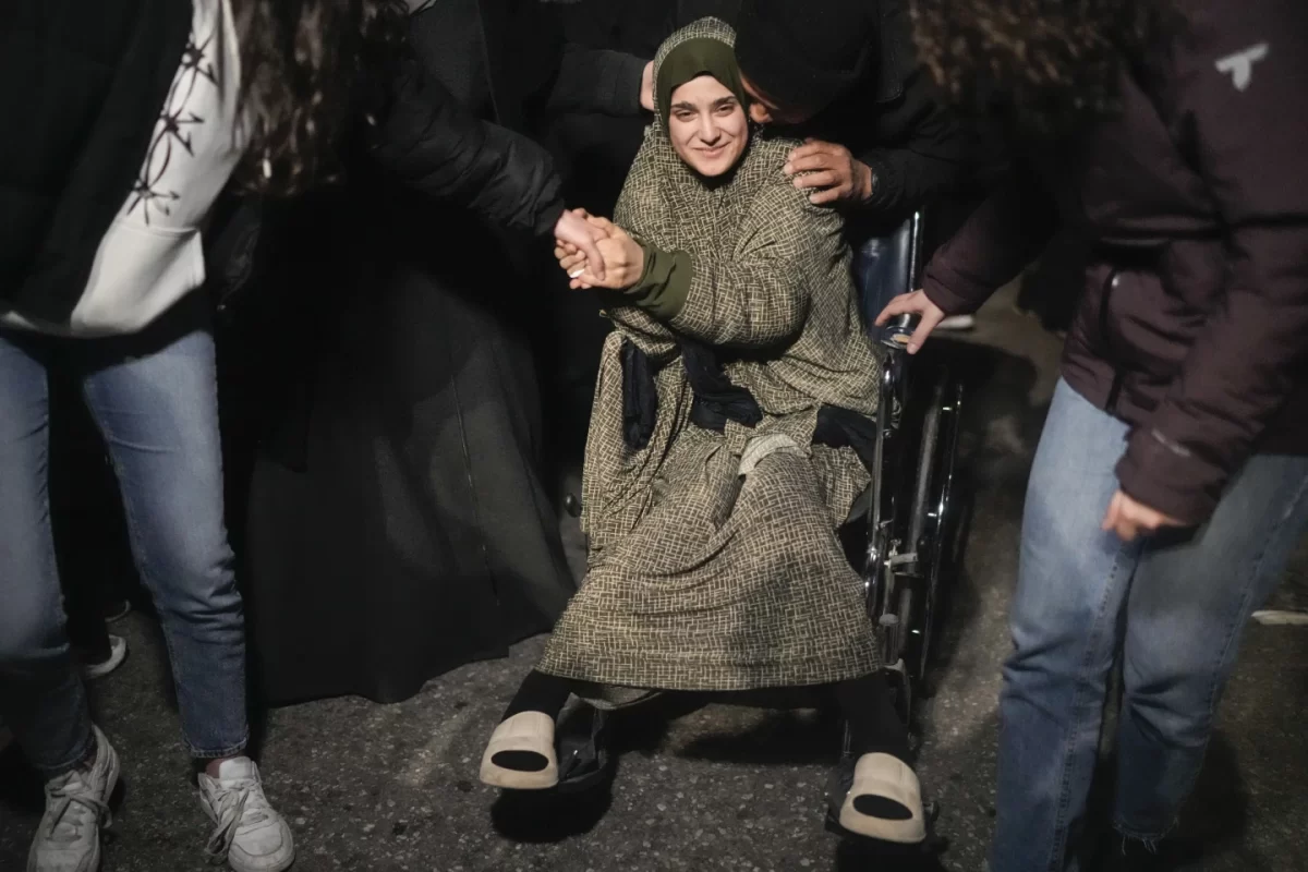 After 15 months of collective grief and anxiety, three Israeli hostages left Hamas captivity and returned to Israel, and dozens of Palestinian prisoners walked free from Israeli jail, leaving both Israelis and Palestinians torn between celebration and trepidation as the ceasefire between Israel and Hamas took hold Sunday.