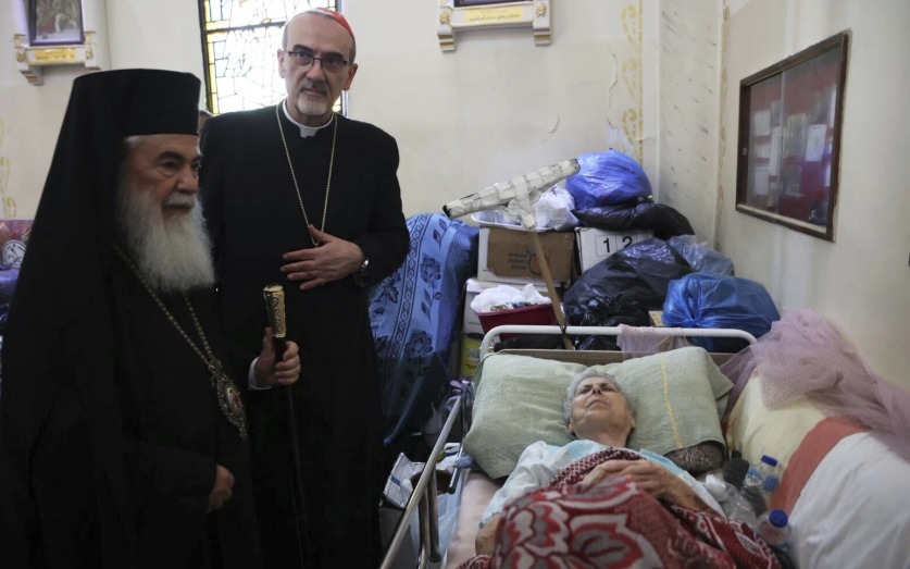The religious delegation to Gaza included two Patriarchs from Jerusalem — Latin Patriarch Cardinal Pierbattista Pizzaballa and Greek Orthodox Patriarch Theophilos III. The rare visit aimed to express the “shared pastoral solicitude of the Churches of the Holy Land,” a statement said.