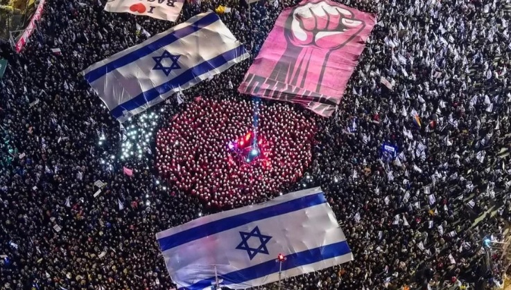 On Saturday, protest organisers said as many as 500,000 demonstrators took to the streets across Israel for the 10th consecutive week, in what the Haaretz newspaper called "the largest demonstration in the country's history".