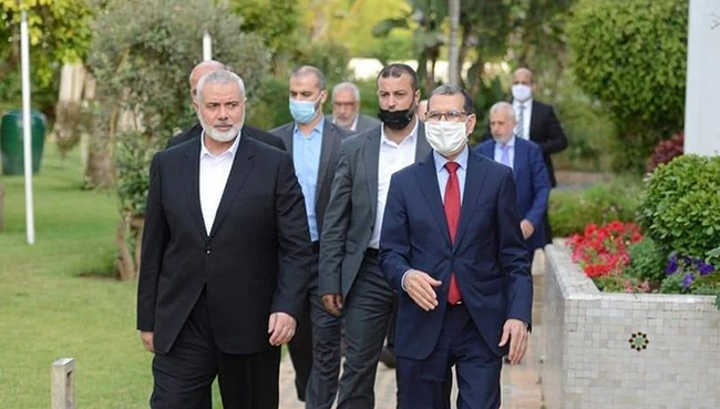 Haniyah who landed in Rabat with several members of Hamas, and received by the leaders of the Moroccan Justice and Development Party, added that the relationship between Palestine and Morocco "is not a relationship of interests or an emergency relationship, but rather a relationship based on religious, humanitarian and fraternal foundations," noting that Morocco " He is at the heart of the Jerusalem issue."