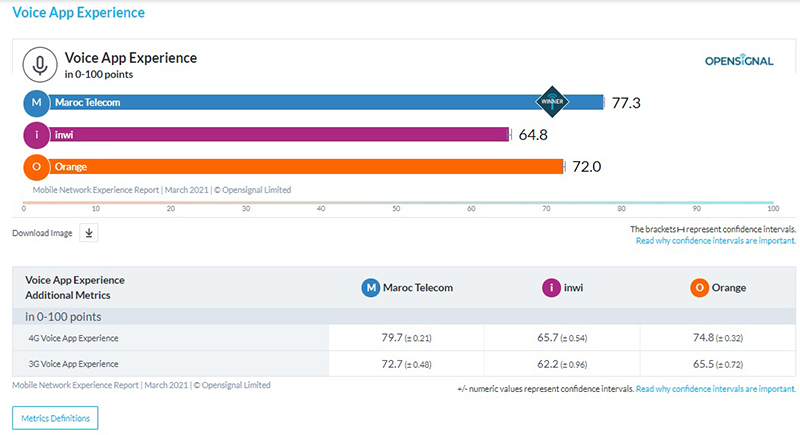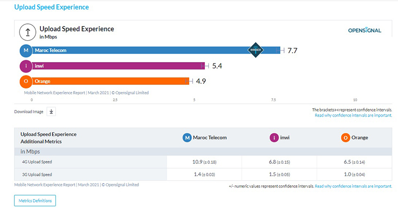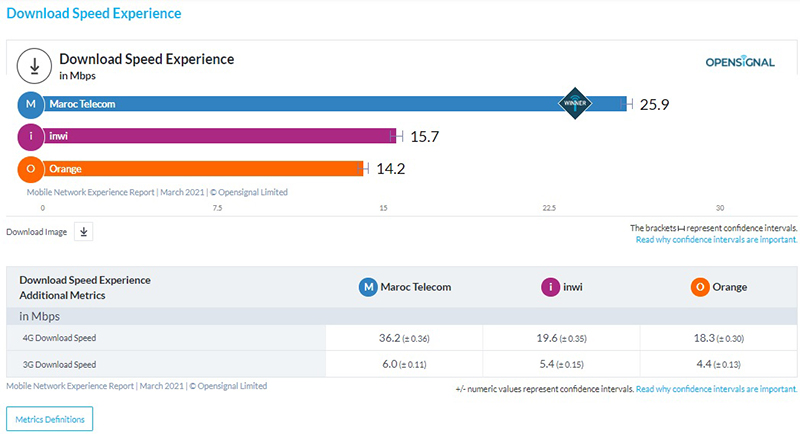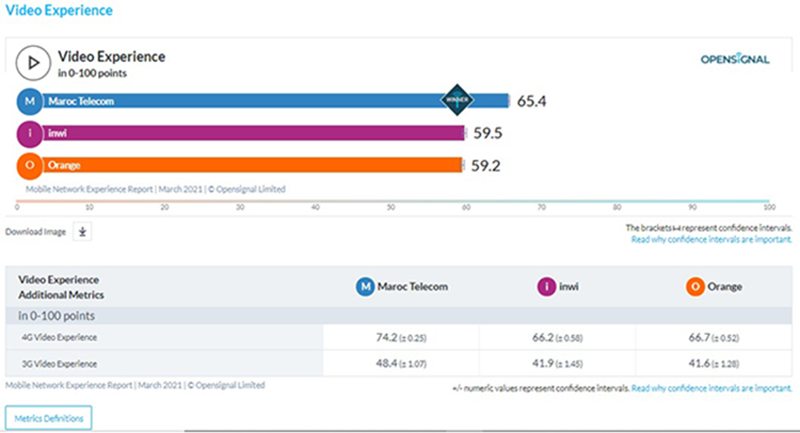 The report added that Maroc Telecom “only lost the 4G Availability award to inwi but this was by a significant margin (6.8 percentage points). It was noteworthy that Maroc Telecom earned a Very Good rating in Video Experience, and had a considerable lead over its rivals on both Download Speed Experience (65.1%-82.3%) and Upload Speed Experience (43.5%-57.9%).”