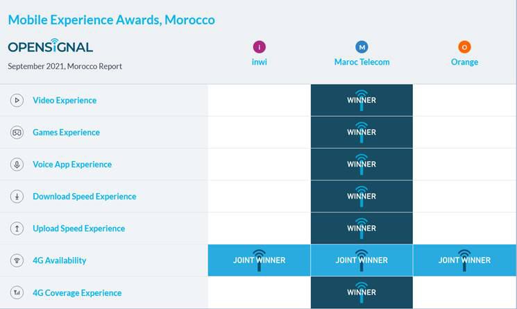 “All three of our experiential awards (Video Experience, Games Experience and Voice App Experience), both our speed awards (Download Speed Experience and Upload Speed Experience) and our 4G Coverage Experience award — and each one of them by a healthy margin,” have been won by Maroc Telecom, according to Opensignal.