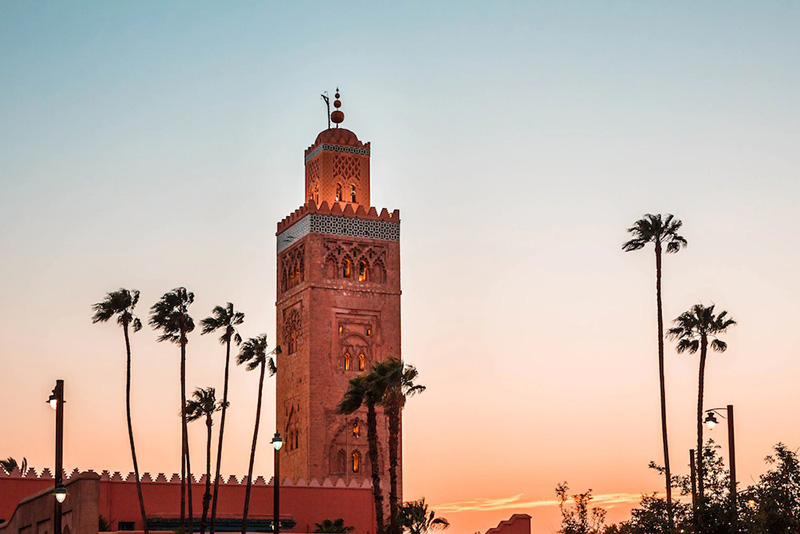 From there, as far as the eye can see, the symbol of the city stands erect. The magnificent 12th-century Koutoubia minaret, with decoration similar to the Giralda in Seville or the Hassan minaret in Rabat.