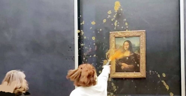 Mona Lisa: Protesters throw soup at da Vinci painting