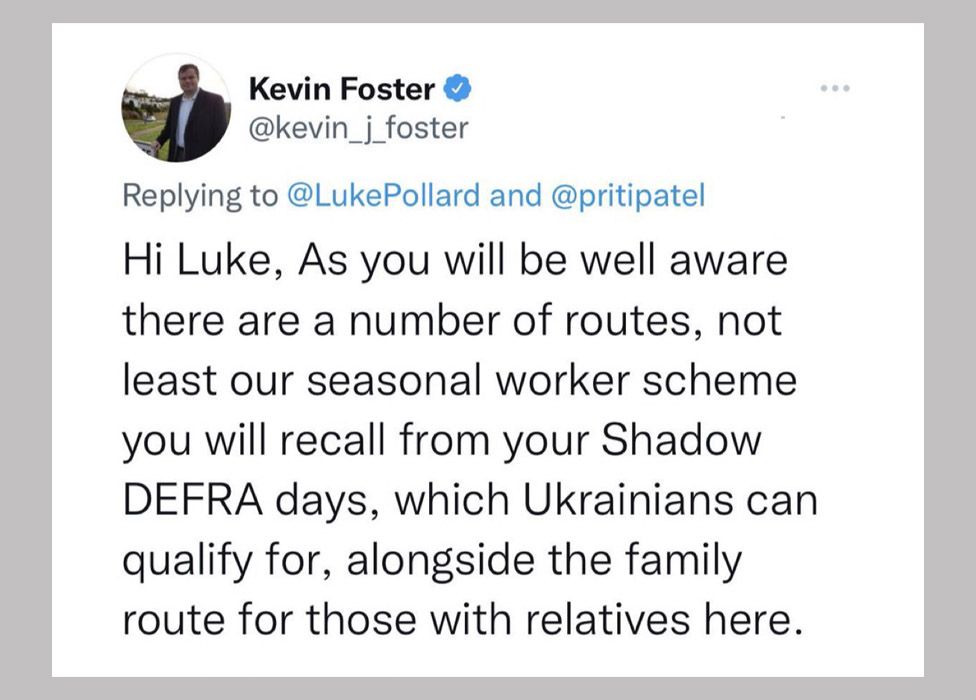 On 26 February, Home Office minister Kevin Foster was widely criticised after highlighting the government's Seasonal Worker visa, which allows people to apply to come to the UK to pick fruit and vegetables.