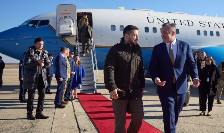 After visiting the front line in eastern Ukraine on Tuesday, Mr Zelensky's journey to Washington DC began with an overnight train journey to Poland before boarding a US Air Force plane, reportedly supported by a Nato spy-plane and an F-15 fighter jet.