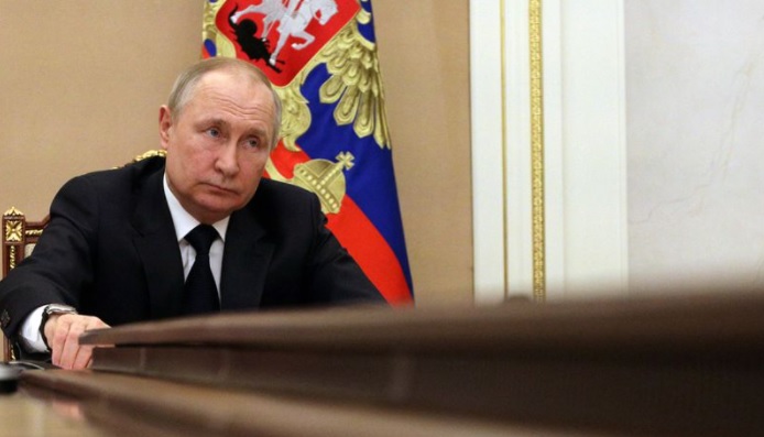 State television cameras recorded part of the meeting, where Putin laid out plans to give formal recognition to separatist entities in eastern Ukraine.
