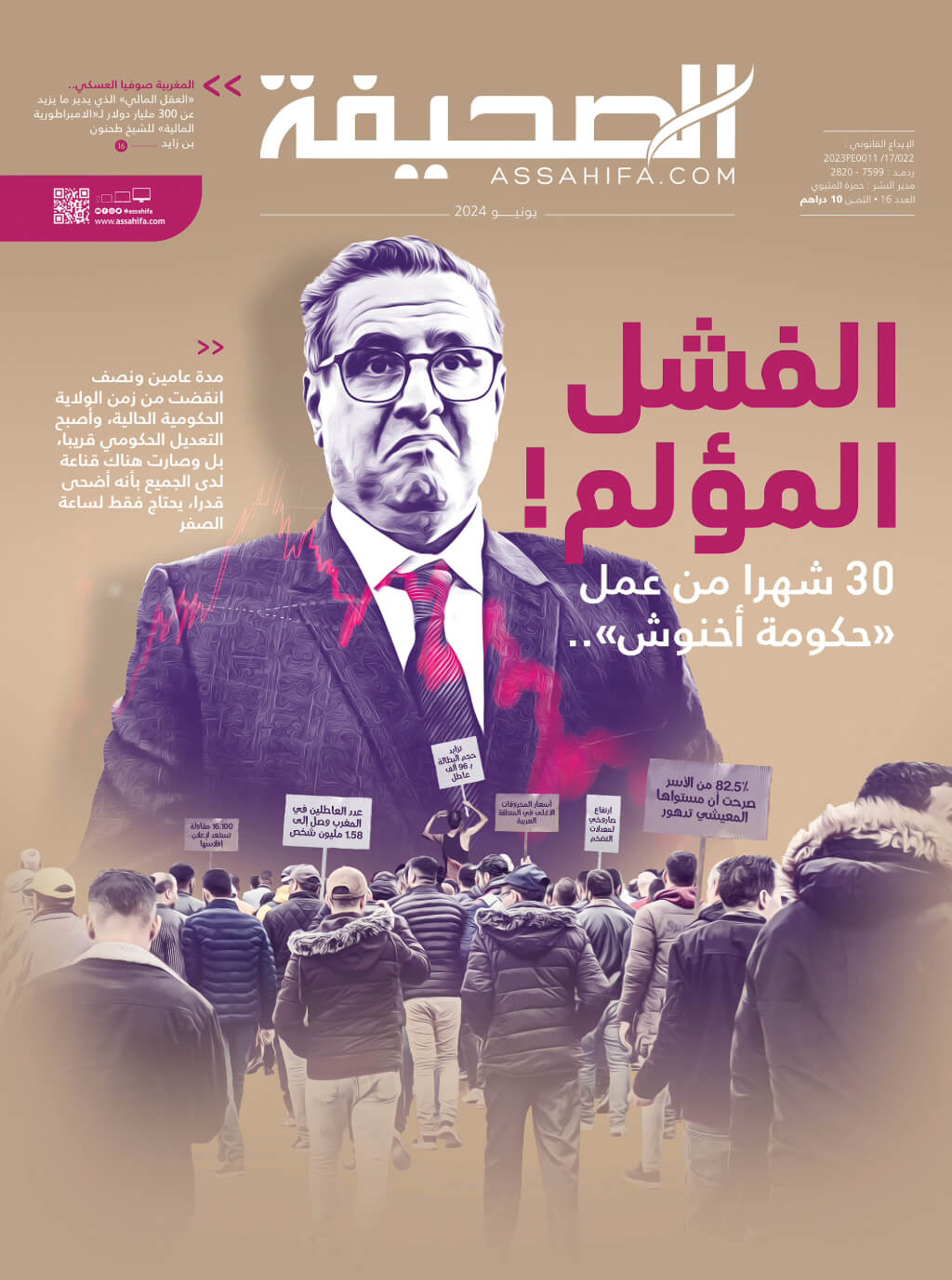 ضمن هذا الملف سيفهم القراء لماذا اخترنا توصيف حصيلة تجربة أخنوش بأنها "فشل مؤلم"، أمام أرقام المندوبية السامية للتخطيط التي تتحدث عن وصول أعداد العاطلين إلى أكثر من 1,64 مليون شخص، ومسلسل الغلاء والتضخم الخارج عن السيطرة، وتعداد الشركات التي أشهرت إفلاسها والتي تجاوزت 16 ألفا في سنة واحدة.